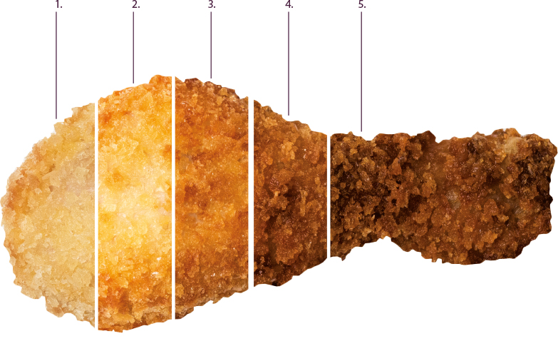 - Alimentul are culoarea usor mai inchisa decat ar trebui si poate retine arome ale altor mancaruri prajite. Se recomanda verificarea calitatii uleiului; acesta poate necesita inlocuire.